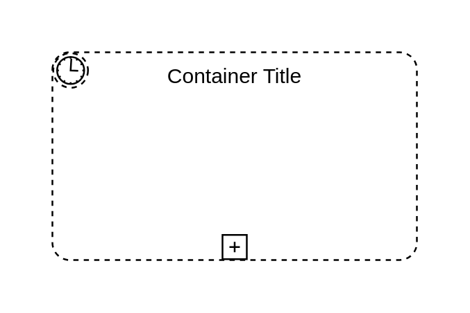 container: 'points=[[0.25,0,0],[0.5,0,0],[0.75,0,0],[1,0.25,0],[1,0.5,0],[1,0.75,0],[0.75,1,0],[0.5,1,0],[0.25,1,0],[0,0.75,0],[0,0.5,0],[0,0.25,0]];shape=mxgraph.bpmn.task2;whiteSpace=wrap;rectStyle=rounded;size=10;html=1;container=1;expand=0;collapsible=0;taskMarker=abstract;bpmnShapeType=subprocess;isLoopSub=1;outline=eventNonint;symbol=timer;',