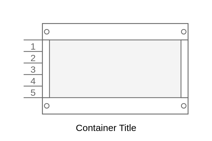 container: 'strokeColor=#666666;html=1;labelPosition=right;align=left;spacingLeft=15;shadow=0;dashed=0;outlineConnect=0;shape=mxgraph.rackGeneral.shelf;container=1;collapsible=0',