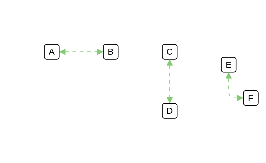 dependency: 'endArrow=block;html=1;startArrow=block;startFill=1;endFill=1;strokeColor=#83CA73;dashed=1;dashPattern=5 5;',