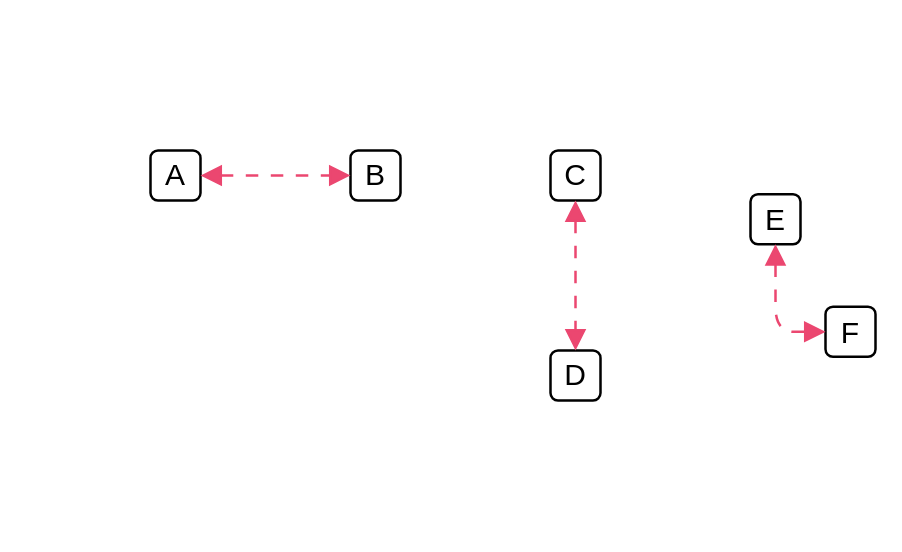 dependency: 'endArrow=block;html=1;startArrow=block;startFill=1;endFill=1;strokeColor=#EB4770;dashed=1;dashPattern=5 5;',