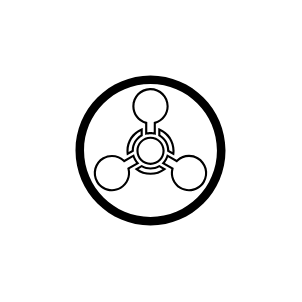 entity: 'shape=mxgraph.signs.safety.chemical_weapon;html=1;pointerEvents=1;fillColor=#000000;strokeColor=none;verticalLabelPosition=bottom;verticalAlign=top;align=center;sketch=0;',